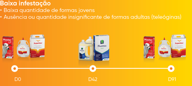 Para comprovar o real efeito do grau de infestação na quantidade de tratamentos necessários para manter a população de carrapatos sobre controle, a Ourofino em parceria com a Universidade Federal de Goiás (UFG) realizou um estudo em que os animais foram separados em três grupos de acordo com o grau de infestação. Neste estudo os carrapatos eram contados semanalmente e o tratamento era realizado conforme a necessidade.