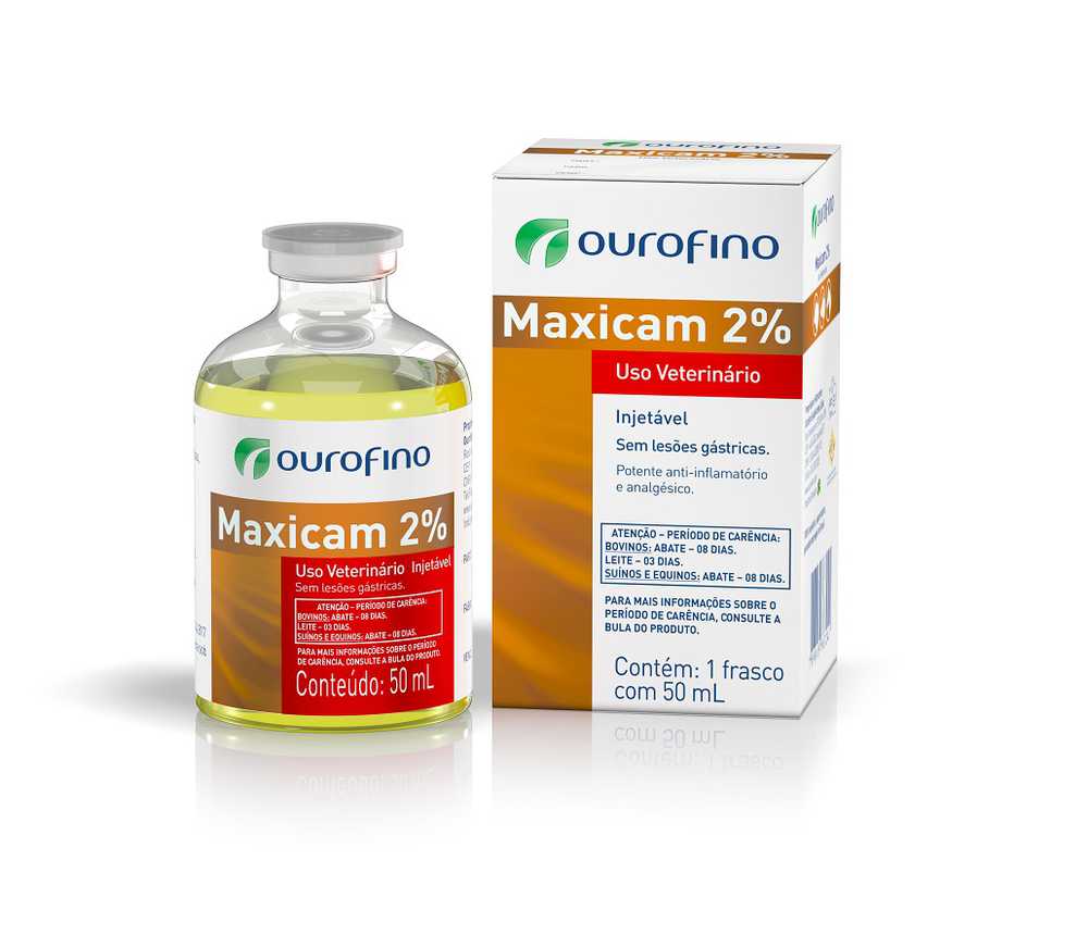 No intuito de reduzir os efeitos adversos sobre o BEA na produção de suínos, a Ourofino dispõe do Maxicam (Figura 1), um produto à base de Meloxican, um potente anti-inflamatório não esteroidal (AINES) seletivo que possui uma ação, anti-inflamatória, antipirética, analgésica, e antiexsudativa. Esta última função, é um dos grandes diferenciais desta molécula, uma vez que o Maxicam age seletivamente em um único sítio de ligação (COX2), responsável pelo desencadeamento do processo inflamatório, não agindo no sítio responsável pela proteção de mucosa gástrica (COX1). Por esse motivo, sua utilização pode ser de médio a longo prazo, não causando efeito gastrolesivo ou ulcerogênico. Sua função analgésica foi provada em diversos trabalhos, sendo, atualmente, o principio de eleição para a realização de manejos em leitões como a castração, corte de cauda e corte de dentes. Além disso, tem indicação para problemas locomotores e muscoesqueléticos, e no tratamento de Síndrome MMA em fêmeas lactantes. Sua dosagem é a de 1 ml a cada 50 kg de peso vivo.