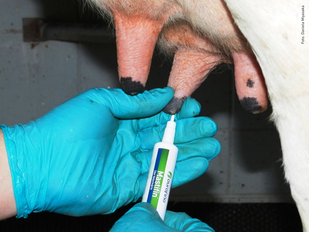 A mastite causa muitos prejuízos às vacas leiteiras porque em casos de animais doentes, o leite deve ser descartado, há queda da produção leiteira, gastos com antibióticos, mão-de-obra, descarte e morte do animal. Ela é caracterizada como uma inflamação da glândula mamária que pode ser classificada como clínica ou subclínica, aguda ou crônica. A causa pode ser tóxica, traumática, alérgica, metabólica ou infecciosa, com destaque para essa última por sua ocorrência mais frequente, principalmente bacteriana, além da mastite causada por fungos, algas e vírus. Nos EUA foi estimado prejuízo anual de dois bilhões de dólares (Bramley, 1996). No Brasil, Elizabeth Oliveira da Costa, em 1999 trabalhou com rebanhos leiteiros dos Estados de São Paulo e Minas Gerais e estimou perdas decorrentes da doença, na ordem de US$ 317,93 por vaca ao ano e prejuízos de US$ 20.611,32 por propriedade ao ano. A mastite contagiosa é transmitida durante a ordenha, de uma vaca infectada (ou quarto mamário infectado) para uma vaca sadia (ou teto sadio). As principais bactérias contagiosas são: Staphylococcus aureus, Staphylococcus coagulase negativo, Streptococcus agalactiae, Streptococcus dysgalactiae e Corynebacterium bovis. Os agentes ambientais são oportunistas e estão presentes no ambiente em que o animal vive. É a partir desta fonte que alcançam o teto, destacam-se as Escherichia coli, Streptococcus uberis e Klebisiella spp. Uma das principais formas de veiculação das infecções é pelas fezes dos animais, pela via ascendente para o canal galactóforo. A mastite clínica é diagnosticada pelos sinais clínicos, que podem ser observados pela inspeção e palpação, pela dor, vermelhidão e por alterações macroscópicas do leite (coágulos e pus observados nos primeiros jatos da ordenha durante os testes da caneca telada ou de fundo escuro). A mastite subclínica é diagnosticada por testes indiretos, dentre os quais, os mais importantes são, como o CMT (California Mastitis Test), Whiteside, condutibilidade elétrica, contagem de células somáticas (CCS), entre outros, pois as alterações se dão somente a nível celular, impossibilitando o diagnóstico direto de um processo inflamatório ou fibrosamento. A limpeza e a higienização das instalações, utensílios e equipamentos, higiene pessoal do ordenhador, realização dos testes da caneca de fundo escuro, California Mastitis Test (CMT), contagem de células somáticas (CCS) e testes microbiológicos são fundamentais para o controle e identificação da doença. As mãos do ordenhador, chão, paredes, entre outros pontos do ambiente, podem ser desinfectados com produtos eficientes e não agressivos à pele e aos equipamentos. É recomendado o desinfetante CB-30 TA, na dosagem de 10 mL para 20 litros de água limpa. Para o tratamento das mastites, o ideal é que antes sejam feitos cultivo, isolamento e antibiograma para identificar o agente envolvido. O produto Mastifin (associação de antibiótico e mucolítico) é indicado para o tratamento das mastites bovinas agudas ou crônicas causadas por agentes Gram-positivos e Gram-negativos sensíveis à gentamicina. Após esgotar o teto acometido o produto deve ser administrado por via intramamária, no canal do teto, massageando na direção ascendente para facilitar a ação do princípio ativo, a dose a ser utilizada é uma seringa em cada quarto afetado e repetido com intervalo de 24 horas, durante três dias consecutivos ou até o desaparecimento dos sinais clínicos da doença. O antimastítico Ciprolactambém é recomendado no tratamento das mastites agudas ou crônicas dos bovinos em lactação. Após o procedimento de ordenha e assepsia do teto, o produto deve ser administrado por via intramamária, aplicado no canal do teto todo o conteúdo de uma seringa em cada quarto afetado, em intervalo de 24 horas, durante três dias consecutivos. Após administração, recomenda-se massagear o teto no sentido de baixo para cima para melhor proveito do medicamento. Em alguns casos a terapia sistêmica associada à intramamária é mais efetiva. Por exemplo, administração de Ciprolac ou Mastifin associado ao antibiótico Penfort PPU ou associado ao antibiótico bactericida Estreptomax. Como terapia de suporte, pode ser utilizado os anti-inflamatórios Diclofenaco 50 ou Maxicam 2%. Para a prevenção e o tratamento das mastites fora do período de lactação, utilizar o Mastifin (vaca seca),desenvolvido para o tratamento e a prevenção das mastites fora do período de lactação, possui ação prolongada que se estende por quatro semanas. Neste caso, após a última ordenha da lactação, é preciso desinfetar os tetos, aplicar pela via intramamária todo o conteúdo de uma seringa em cada quarto do úbere, em dose única, recomenda-se massagear o teto no sentido de baixo para cima para melhor proveito do medicamento. A utilização de antimicrobianos dever ser feita corretamente, de acordo com a recomendação do médico veterinário. O manejo na fazenda influencia diretamente na ocorrência da mastite, assim a ordenha deve ser bem feita. A higiene e a desinfecção são fundamentais para o controle dessa doença.