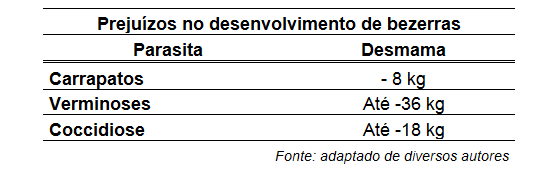 De maneira genérica, sabe-se que bezerros e bezerras nascem livres de parasitas internos e externos. As primeiras semanas de vida são fundamentais para ter os primeiros contatos com os desafios sanitários, incluindo os parasitas internos e externos que são adquiridos conforme os desafios ambientais e as condições de controle estabelecidas pelas propriedades. É importante o primeiro contato dos animais com os parasitas, permitindo o desenvolvimento da imunidade porque sem ela eles podem desenvolver infestações incompatíveis com a vida. Por outro lado, é fundamental que se definam estratégias de controle eficientes capazes de permitir o contato com os parasitas sem que tenham o desenvolvimento comprometido e permaneçam saudáveis e produtivos durante a fase adulta. Cada carrapato, por exemplo, se alimenta de até 3 ml de sangue, comprometendo o desenvolvimento dos bezerros, redução na produção de leite, além de transmitir hemoparasitas. Em vacas com alta produção de leite os prejuízos decorrentes das parasitoses são mais expressivos, pois são menos resistentes aos parasitas do que as vacas com baixa produção.