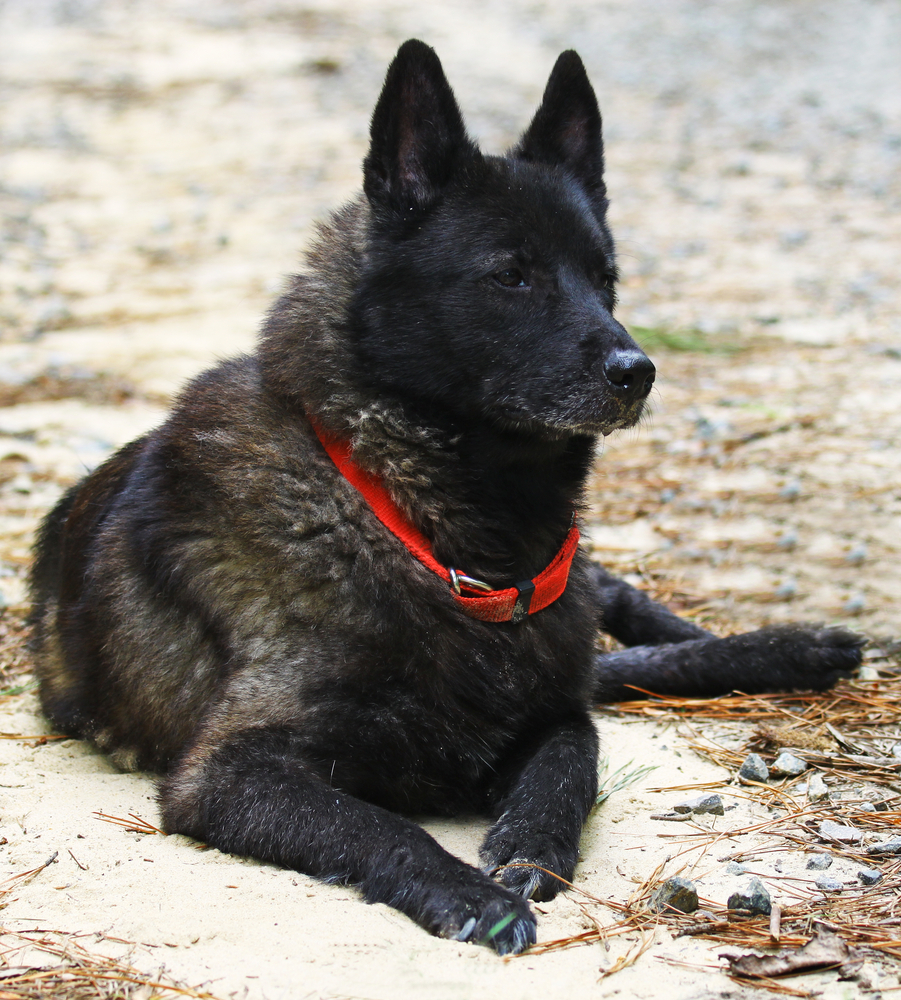 - Pelo cinza: pelagem dupla, espessa e áspera que requer escovação diária. Possui uma máscara preta e tons variados de cinza.