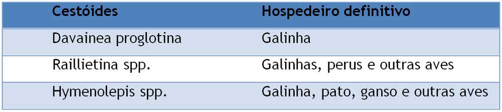 Tabela 2: Cestóides mais importantes em aves.