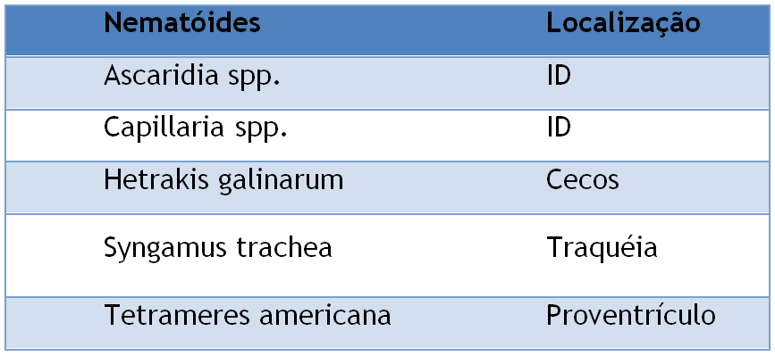 Tabela 1: Nematóides mais importantes em aves.
