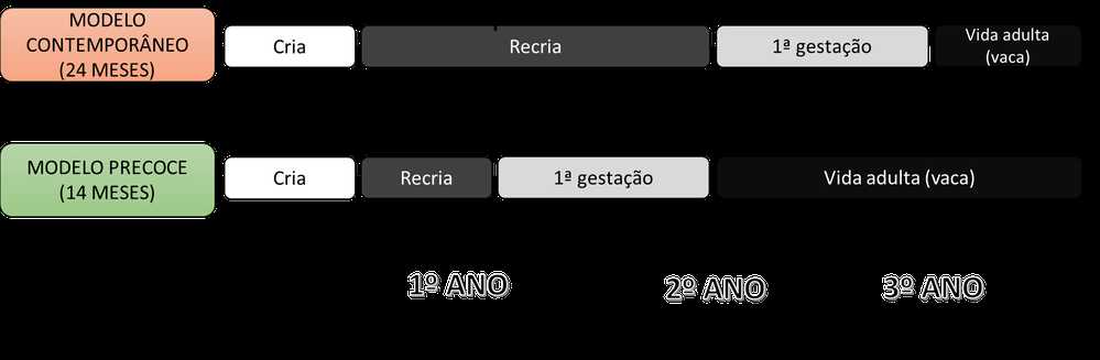 Isso significa que, desde que estabelecido adequado manejo nutricional, o qual propicie o desenvolvimento apropriado das novilhas ao início da estação de monta, a IATF pode ser uma ferramenta para se adiantar a idade à primeira cobertura com relativo sucesso, resultando em diminuição da idade ao primeiro parto de 3 anos para 2 anos de idade (figura 1). Com este manejo ocorre a redução do intervalo entre gerações, acelerando também o ganho genético do rebanho.