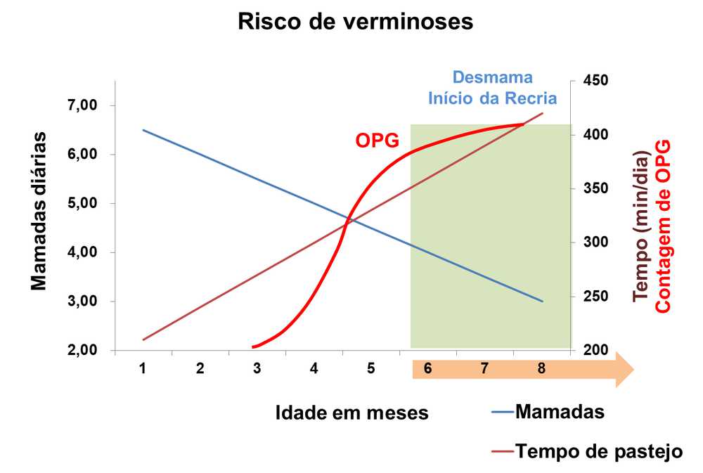 A fase de recria representa um dos mais importantes pontos de partida para a lucratividade de uma fazenda. Todos os esforços com o trabalho reprodutivo iniciado nas matrizes – o protocolo de IATF, para obter as melhores taxas de concepção, prenhez e o índice de parição até a fase de desmama – pode ser desperdiçado se a taxa de desmama, com bezerros pesados e sadios estiver comprometida por problemas sanitários. De maneira geral, os bezerros nascem livres de parasitas, mas a partir do segundo mês de vida os desafios parasitários são muito intensos. Bezerros levam cerca de duas semanas para iniciarem a ingestão de alimentos além do leite, dessa forma a infecção por de larvas de helmintos é dependente da ingestão de água e pastagens contaminadas.