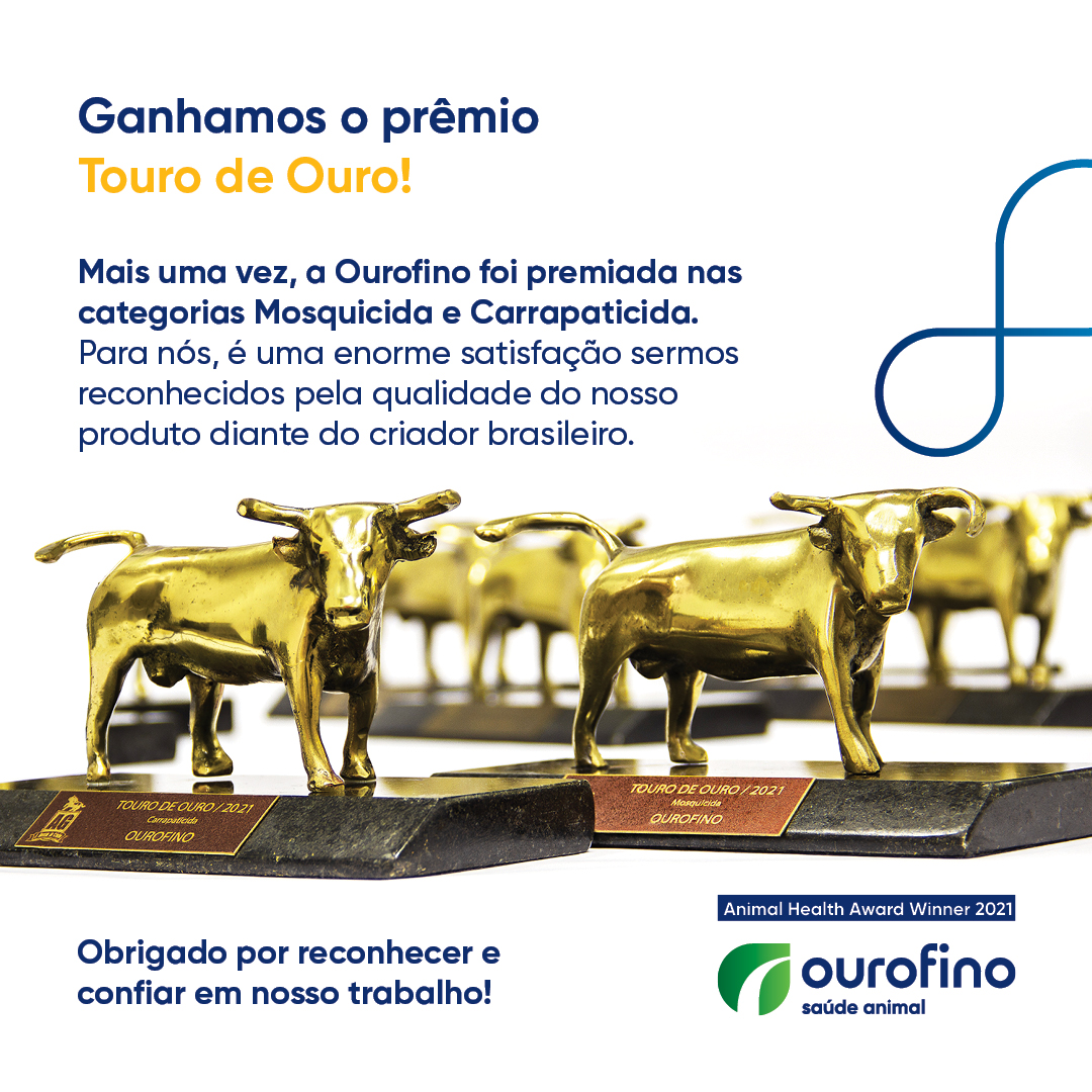 A Ourofino Saúde Animal foi premiada com o Troféu Touro de Ouro nas categorias carrapaticida e mosquicida pela 12ª vez consecutiva. A premiação é promovida pela Editora Centauro que edita a Revista AG e homenageia as empresas que mais se destacam em seus segmentos no país.