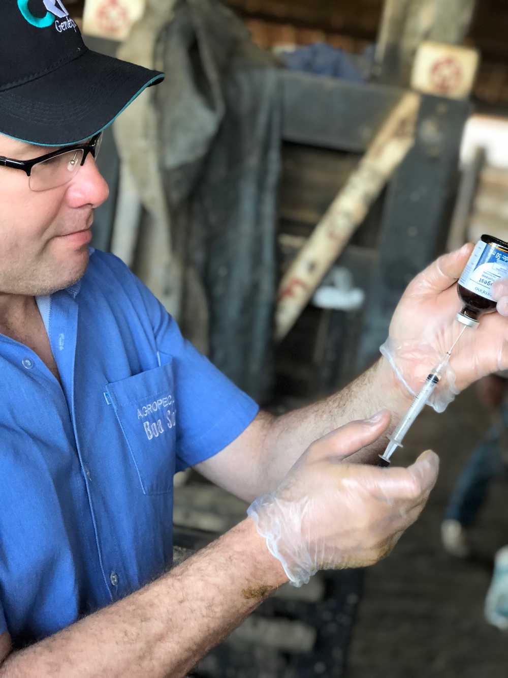 Franklin Dantas, médico-veterinário, usando o Sincrogest Injetável para a indução de puberdade das novilhas da Agropecuária Boa Sorte