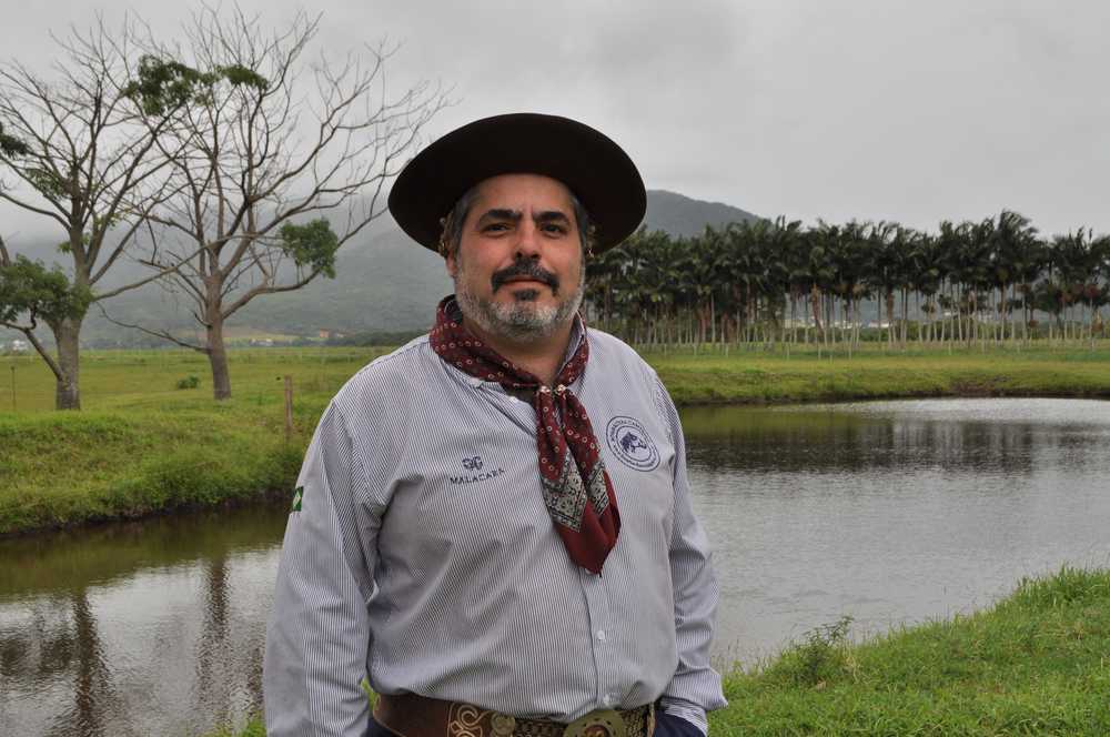 O pecuarista Marcelo Alexandre (foto abaixo), proprietário da Cabanha Quinta dos Ganchos de Governador Celso Ramos, em Santa Catarina, utiliza o Sistema Voisin. A propriedade trabalha com cruzamento industrial na modalidade tricross e engorda por ano mais de 1500 animais. “Nosso rebanho tem ¼ de sangue europeu e é criado totalmente a pasto. Aqui temos 400 piquetes no Sistema Voisin com o capim nativo e todos eles têm um cocho de água de mesma extensão. A troca de piquete é diária e o boi só volta no mesmo piquete 21 dias depois com isso, ele acostuma com a presença humana e não sofre com estrese”, explica o pecuarista.