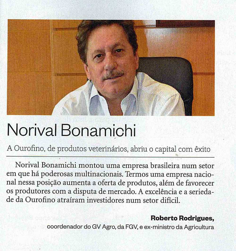 O destaque de Norival é acompanhado por uma fala de Roberto Rodrigues, ex-ministro da Agricultura, que ressalta o sucesso da abertura de capital da Ourofino Saúde Animal.