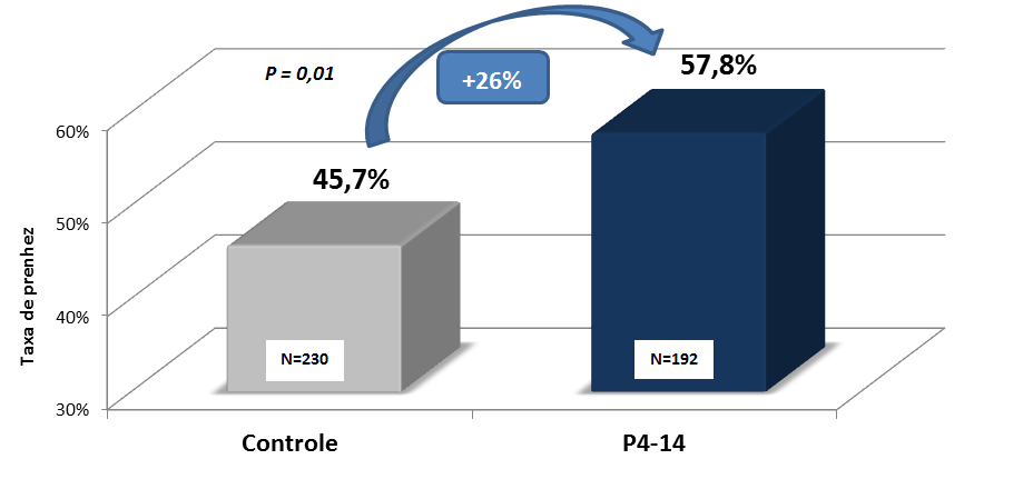 Inúmeros estudos têm avaliado os efeitos da suplementação de progesterona após a IATF na taxa de concepção dos animais. Recentemente, Yan et al. (2016) realizaram uma meta-análise com dados de 53 estudos (19040 vacas de leite e de corte) publicados entre os anos de 1953 e 2014, envolvendo a suplementação de P4 após inseminação artificial (IA). Esses autores verificaram que vacas tratadas com progesterona após IA apresentaram aumento na chance de estabelecimento gestacional. Entretanto, esse efeito positivo na taxa de concepção foi observado apenas quando a P4 foi administrada entre os dias 3 e 7 após IA e em vacas que apresentavam baixa fertilidade. Esses dados sugerem haver um período ideal para realizar a suplementação de progesterona (de 3 a 7 dias após a IA) e que vacas com fertilidade reduzida são as mais beneficiadas pela técnica.